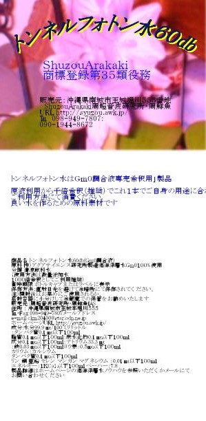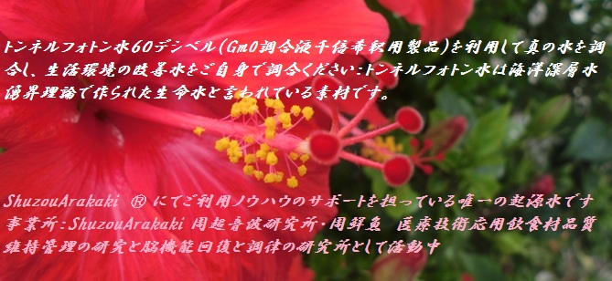 トンネルフォトン水生命水を極める:こちらのページは沖縄海洋深層水調合液糸満沖合いヤカラ1号にて深海1400m、600m、沖縄国頭与那覇岳の森の水の3種を深層水湧昇理論を採用して調合した調合液トンネルフォトン水についての資料ページです。ご自身のライフ、ヘルスのスタイルに応じた利用方法を消費者へ提供:便宜(ShuzouArakaki Ⓡ)を図るための資料サイトです