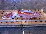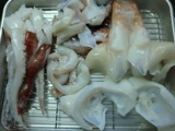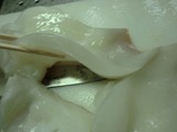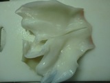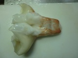ゲソ部分を二分割:透明な部分は軟骨、コラーゲン質
