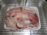 開くとこのようになります、透明感のある包丁で指している部分は軟骨